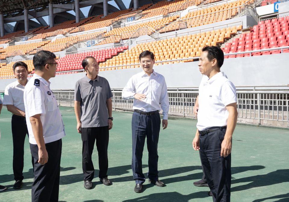 作为“湘超联赛”郴州赛区主场地,市体育中心正按赛事要求加紧提质改造。阚保勇实地查看功能布局、设施配套、安全保障等情况,要求围绕“安全、专业、优质”目标,高标准高质量抓好设施提质、做好赛事筹备工作,让参赛人员感受贴心服务,让观赛群众享受舒心体验。